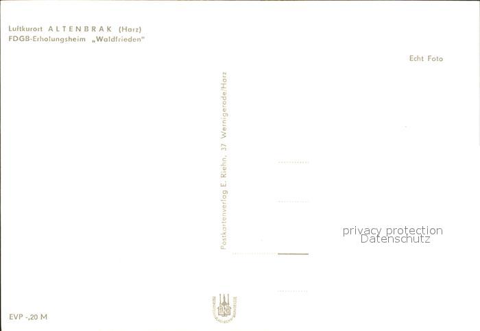 72195489 Altenbrak Harz FDGB Erholungsheim Waldfrieden postalisch nicht gelaufen Erhaltung siehe scans KatCode: 11110015085015