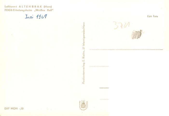 73907778 Altenbrak Harz FDGB Erholungsheim Weisses Ross postalisch nicht gelaufen Erhaltung siehe scans [FriedD77] KatCode: 11110015085015