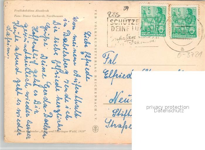 43500025 alte Postkarte Altenbrak Harz Freilichtb?hne postalisch gelaufen Erhaltung siehe scans [LiesaD40] KatCode: 11110015085015