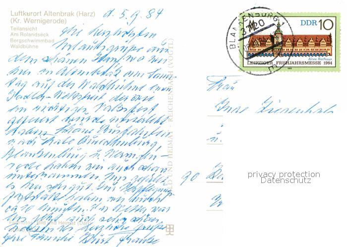 72654850 alte Postkarte Altenbrak Harz Rolandseck Bergschwimmbad Waldbuehne postalisch gelaufen Erhaltung siehe scans [AndreD76] KatCode: 11110015085015
