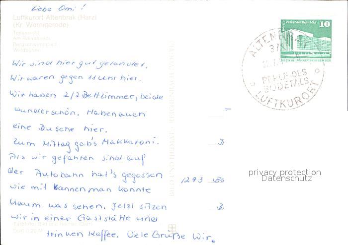 72263491 alte Postkarte Altenbrak Harz Rolandseck Bergschwimmbad Waldbuehne postalisch gelaufen Erhaltung siehe scans KatCode: 11110015085015