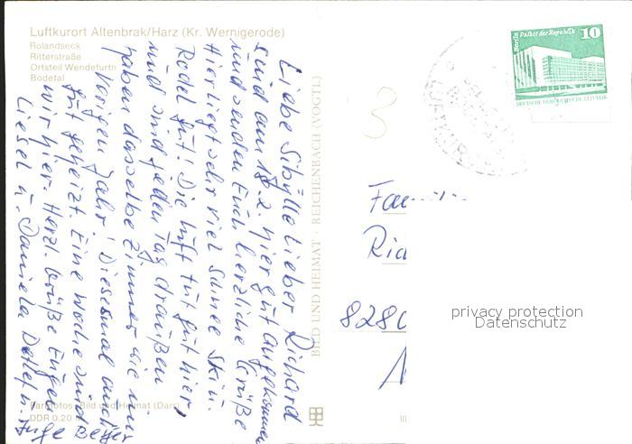 72240340 alte Postkarte Altenbrak Harz Rolandseck Ritterstrasse Ortsteil Wendefurth Bodetal postalisch gelaufen Erhaltung siehe scans KatCode: 11110015085015