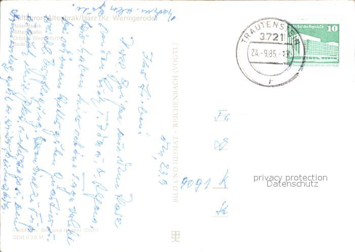 72324714 alte Postkarte Altenbrak Harz Rolandseck Ritterstrasse Wendefurth Bodetal postalisch gelaufen Erhaltung siehe scans KatCode: 11110015085015