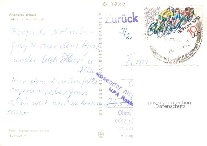 72940424 alte Postkarte Altenbrak Harz Talsperre Wendefurth postalisch gelaufen Erhaltung siehe scans [NatalD47] KatCode: 11110015085015
