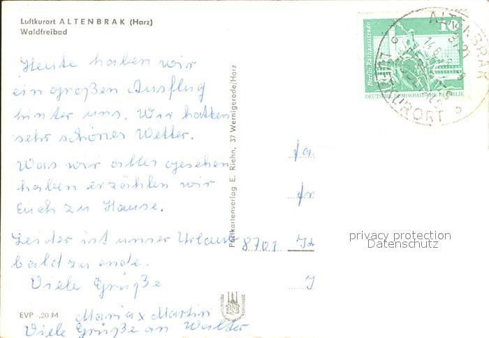 72334870 alte Postkarte Altenbrak Harz Waldfreibad postalisch gelaufen Erhaltung siehe scans KatCode: 11110015085015