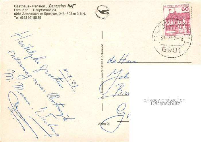 73651598 alte Postkarte Altenbuch Unterfranken Gasthaus Pension Deutscher Hof Gastraum postalisch gelaufen Erhaltung siehe scans [FriedD77] KatCode: 11110009676111