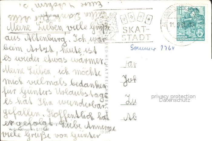 72385941 alte Postkarte Altenburg Geising Schloss Skatstadt postalisch gelaufen Erhaltung siehe scans KatCode: 11110014290140