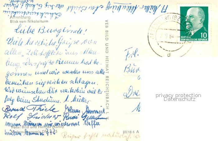 72632064 alte Postkarte Altenburg Thueringen Blick vom Nikolaiturm Kirche Schloss postalisch gelaufen Erhaltung siehe scans [FriedD77] KatCode: 11110016077001