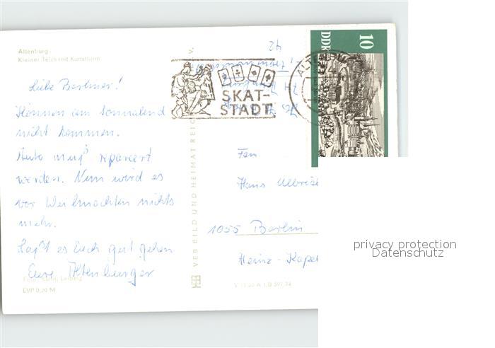 72201169 alte Postkarte Altenburg Thueringen Kleiner Teich mit Kunstturm postalisch gelaufen Erhaltung siehe scans KatCode: 11110016077001