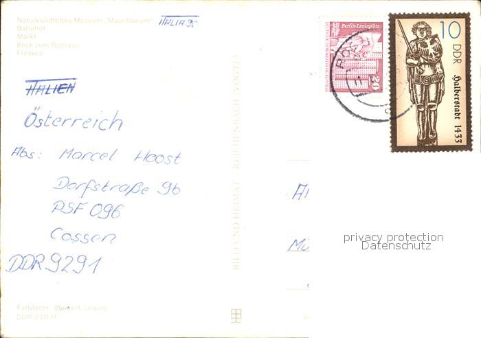 72414922 alte Postkarte Altenburg Thueringen Naturkundemuseum Mauritianum Bahnhof Markt Rathaus Freibad postalisch gelaufen Erhaltung siehe scans KatCode: 11110016077001