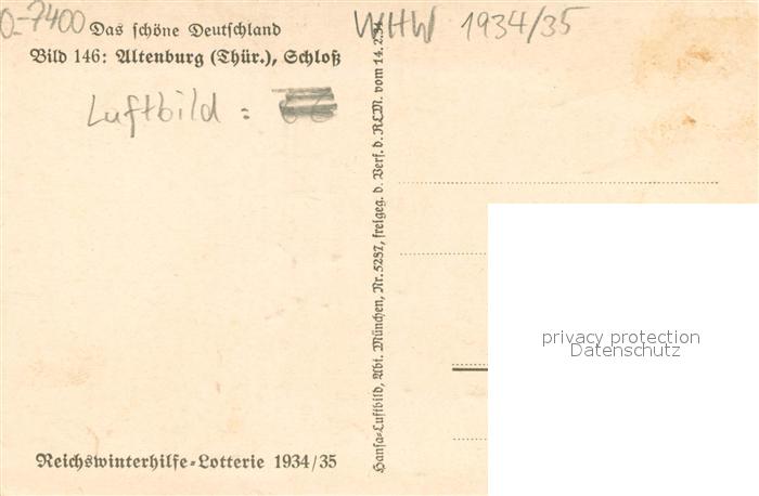 73692834 Altenburg Thueringen Schloss Serie Das schoene Deutschland Bild 146 Reichswinterhilfe-Lotterie 1934/35 postalisch nicht gelaufen Fliegeraufnahme Erhaltung siehe scans [FriedD77] KatCode: 11110016077001