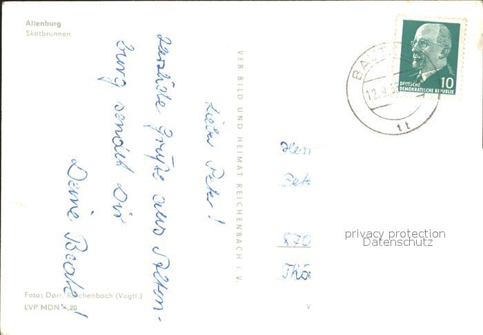 72053379 alte Postkarte Altenburg Thueringen Skatbrunnen postalisch gelaufen Erhaltung siehe scans KatCode: 11110016077001
