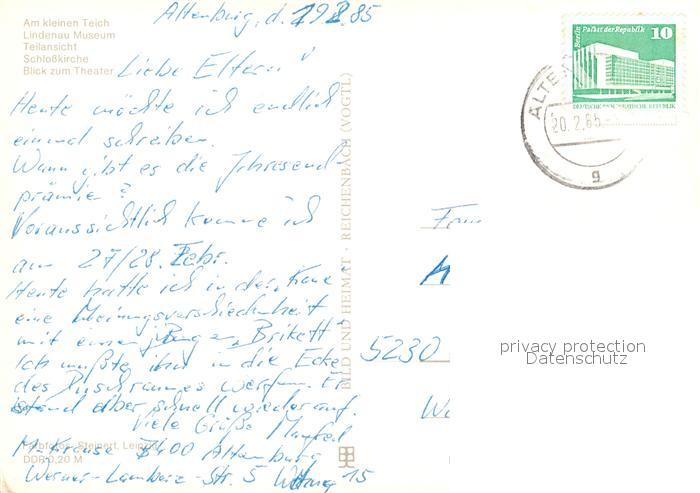 73061269 alte Postkarte Altenburg Thueringen Teich Lindenau Museum Schlosskirche Theater postalisch gelaufen Erhaltung siehe scans [FriedD77] KatCode: 11110016077001