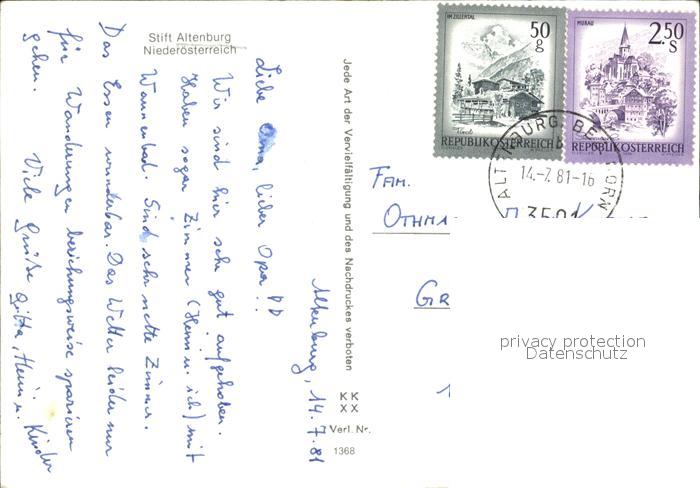 72489790 alte Postkarte Altenburg Waldviertel Stift Altenburg Teilansichten postalisch gelaufen Erhaltung siehe scans KatCode: 11390124031101