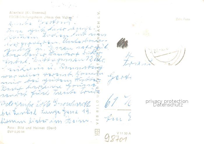 73101397 alte Postkarte Altenfeld Thueringen Erholungsheim Haus des Volkes postalisch gelaufen Erhaltung siehe scans [LiesaD40] KatCode: 11110016070002