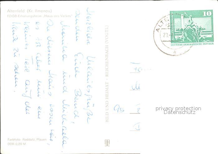 72133046 alte Postkarte Altenfeld Thueringen FDGB Erholungsheim Haus Volkers postalisch gelaufen Erhaltung siehe scans KatCode: 11110016070002