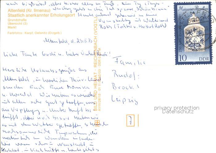 72257820 alte Postkarte Altenfeld Thueringen Grundstrasse uebersicht Markt postalisch gelaufen Erhaltung siehe scans KatCode: 11110016070002