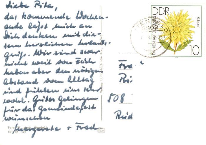 73900732 alte Postkarte Altenfeld Thueringen Masserberger Strasse Blick vom Koenigswald Bergstrasse Schwimmbad Park am Markt postalisch gelaufen Erhaltung siehe scans [WerneD78] KatCode: 11110016070002