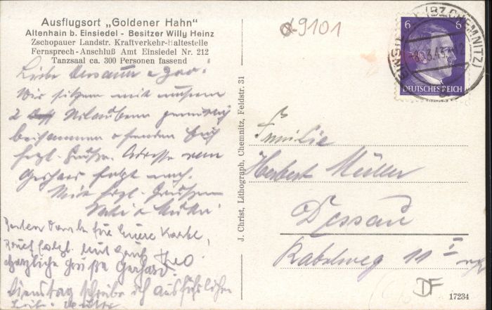 40971371 Altenhain Chemnitz Gasthof Goldener Hahn postalisch gelaufen Alte Ansichtskarte Postkarte alte Postkarte Katcode 11110014161000