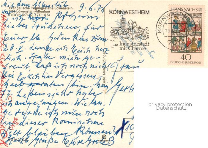 73719589 alte Postkarte Altenhau Loewenstein Ev Tagungsstaette Loewenstein Fliegeraufnahme postalisch gelaufen Erhaltung siehe scans [WerneD78] KatCode: 11110008125059