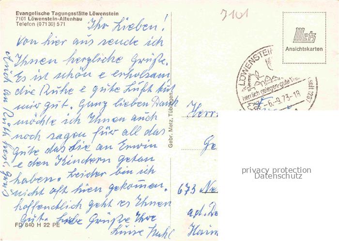 74051027 alte Postkarte Altenhau Loewenstein Evangelische Tagungsstaette Loewenstein postalisch gelaufen Erhaltung siehe scans [FriedD77] KatCode: 11110008125059