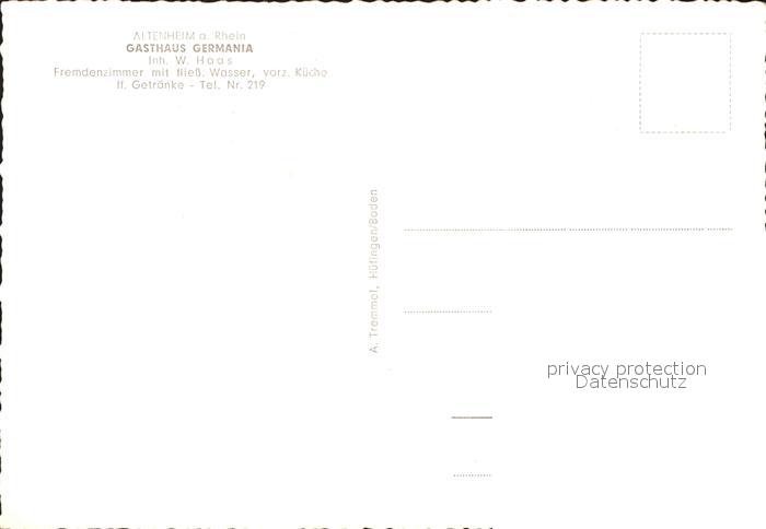 11976055 Altenheim Bas-Rhin Gasthaus Germania Gaststube postalisch nicht gelaufen Erhaltung siehe scans KatCode: 11170067467006