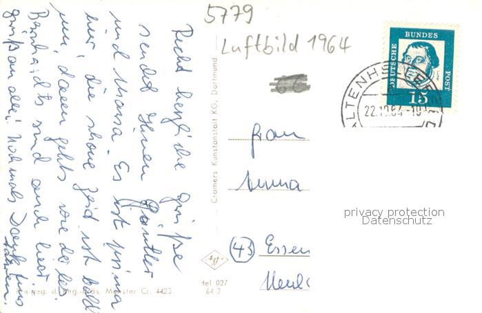 73705773 alte Postkarte Altenhellefeld Fliegeraufnahme postalisch gelaufen Erhaltung siehe scans [WerneD78] KatCode: 11110005958044