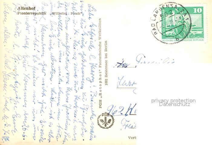 73037953 alte Postkarte Altenhof Eberswalde Pionierrepublik Wilhelm Pieck postalisch gelaufen Erhaltung siehe scans [KathaD81] KatCode: 11110012060198
