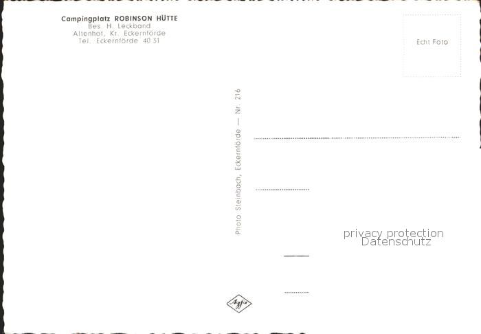 72076075 Altenhof Eckernfoerde Campingplatz Robinson Huette postalisch nicht gelaufen Erhaltung siehe scans KatCode: 11110001058004