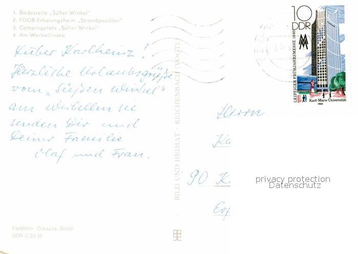 72650979 alte Postkarte Altenhof Schorfheide Badestelle FDGB Erholungsheim Campingplatz Werbellinsee postalisch gelaufen Erhaltung siehe scans [FriedD77] KatCode: 11110012060198