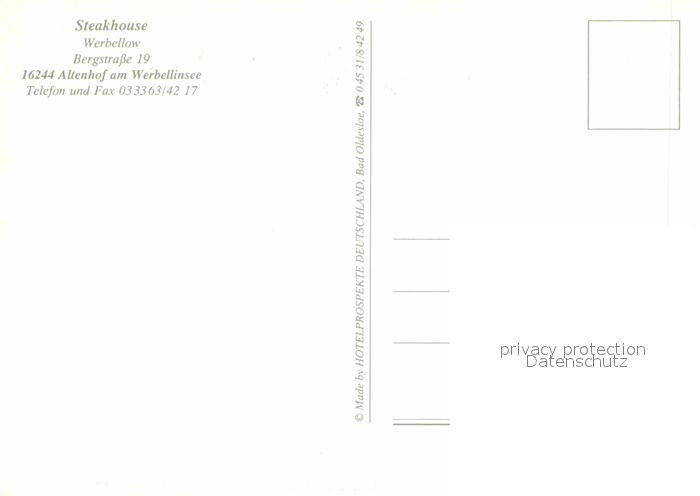 72681471 Altenhof Schorfheide Steakhouse Werbellow am Werbellinsee postalisch nicht gelaufen Erhaltung siehe scans [LiesaD40] KatCode: 11110012060198