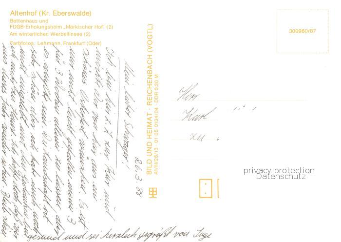 73830456 Altenhof Werbellinsee Bettenhaus und FDGB Erholungsheim Maerkischer Hof Am winterlichen Werbellinsee postalisch nicht gelaufen Erhaltung siehe scans [WerneD78] KatCode: 11110012060198