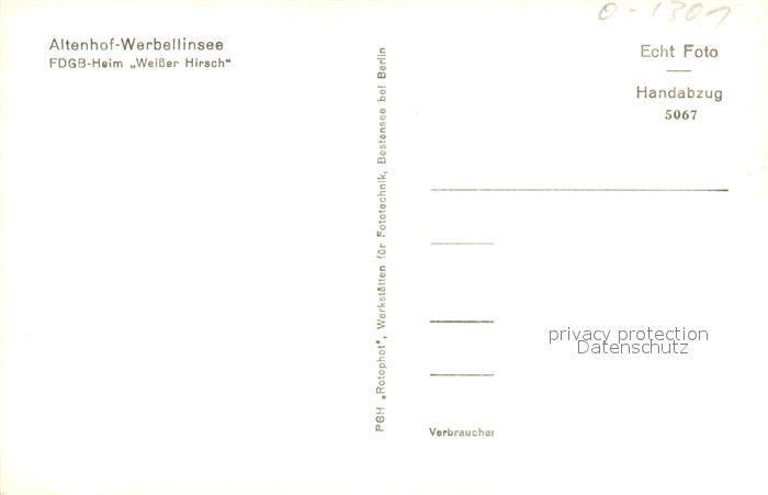 43352343 Altenhof Werbellinsee FDGB Heim Weisser Hirsch postalisch nicht gelaufen Erhaltung siehe scans [WerneD78] KatCode: 11110012060198