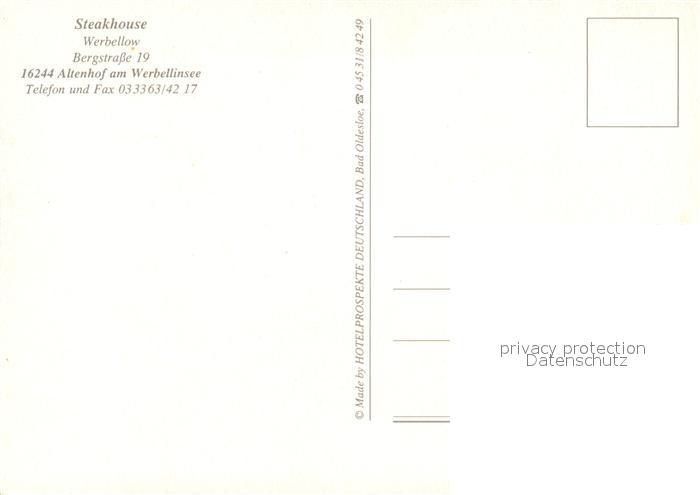 73544204 Altenhof Werbellinsee Steakhouse Restaurant Terrasse postalisch nicht gelaufen Erhaltung siehe scans [FriedD77] KatCode: 11110012060198