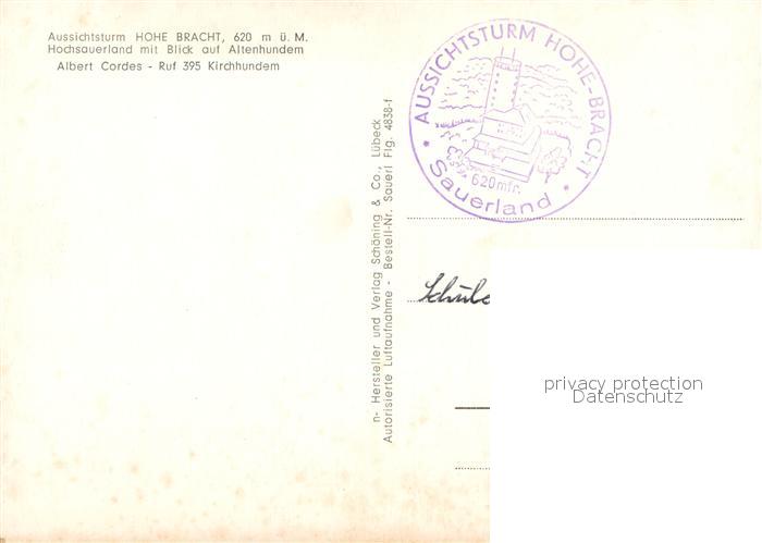 73629282 Altenhundem Aussichtsturm Hohe Bracht Fliegeraufnahme postalisch nicht gelaufen Erhaltung siehe scans [FriedD77] KatCode: 11110005966020