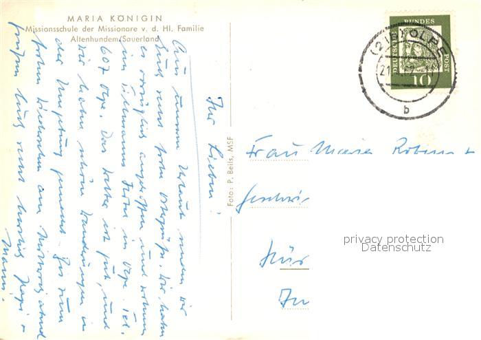 73161605 alte Postkarte Altenhundem Maria Koenigin Missionsschule postalisch gelaufen Erhaltung siehe scans [WerneD78] KatCode: 11110005966020