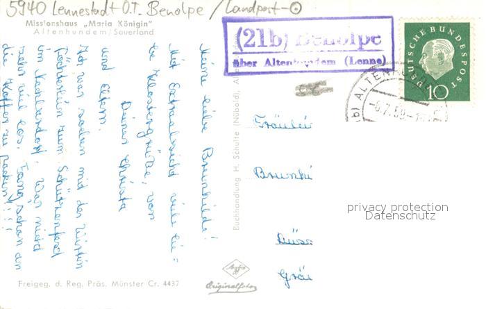 73700050 alte Postkarte Altenhundem Missionshaus Maria Koenigin postalisch gelaufen Fliegeraufnahme Erhaltung siehe scans [FriedD77] KatCode: 11110005966020