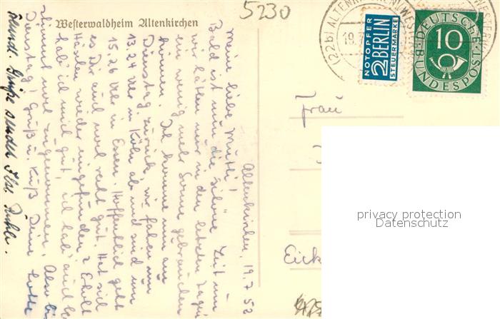 73755145 alte Postkarte Altenkirchen Westerwald Westerwaldheim Aussenansicht postalisch gelaufen Erhaltung siehe scans [LiesaD40] KatCode: 11110007132501