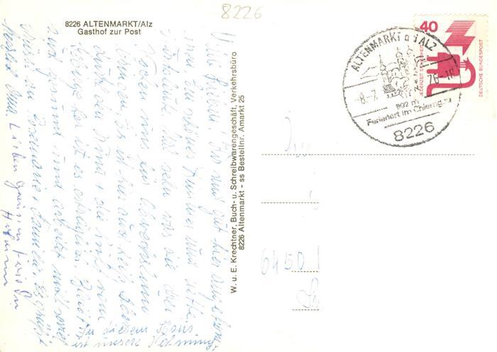 73893465 alte Postkarte Altenmarkt Alz Gasthof Metzgerei zur Post postalisch gelaufen Erhaltung siehe scans [WerneD78] KatCode: 11110009189111