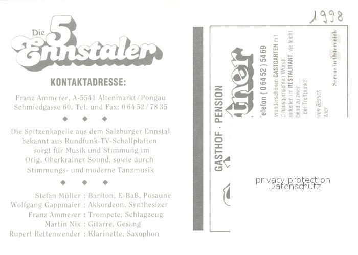 73171669 Altenmarkt Pongau 5 Ennstaler Schartner postalisch nicht gelaufen Keine Postkarte (siehe scan) Erhaltung siehe scans [NatalD47] KatCode: 11390322050401