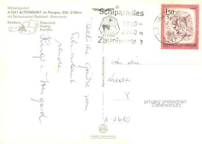 73587173 alte Postkarte Altenmarkt Pongau Fliegeraufnahme mit Schischaukel Radstadt postalisch gelaufen Erhaltung siehe scans [WerneD78] KatCode: 11390322050401