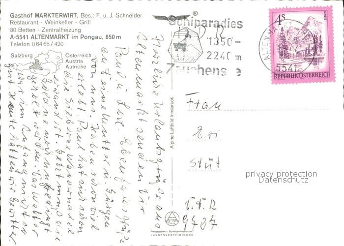 72517961 alte Postkarte Altenmarkt Pongau Gasthof Markterwirt Altenmarkt postalisch gelaufen Erhaltung siehe scans KatCode: 11390322050401