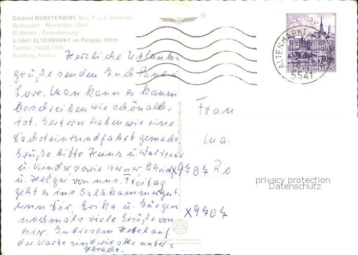 72516376 alte Postkarte Altenmarkt Pongau Gasthof Markterwirt postalisch gelaufen Erhaltung siehe scans KatCode: 11390322050401