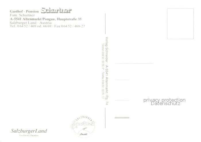 73373191 Altenmarkt Pongau Gasthof Pension Schartner postalisch nicht gelaufen Erhaltung siehe scans [FriedD77] KatCode: 11390322050401