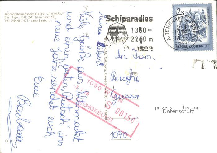 71845328 alte Postkarte Altenmarkt Pongau Jugenderholungsheim Haus Veronika postalisch gelaufen Erhaltung siehe scans KatCode: 11390322050401