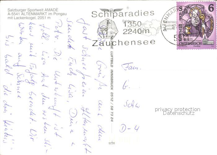 72459759 alte Postkarte Altenmarkt Pongau mit Lackenkogel Fliegeraufnahme postalisch gelaufen Erhaltung siehe scans KatCode: 11390322050401