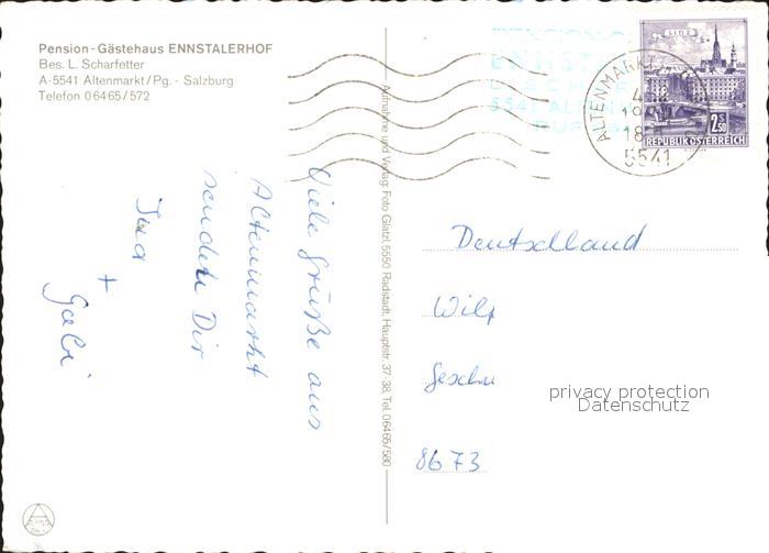 72080021 alte Postkarte Altenmarkt Pongau Pension Gaestehaus Ennstalerhof postalisch gelaufen KatCode: 11390322050401