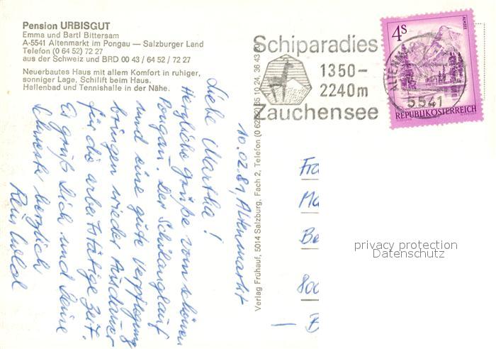 73589092 alte Postkarte Altenmarkt Pongau Pension Urbisgut postalisch gelaufen Erhaltung siehe scans [PaolaD17] KatCode: 11390322050401