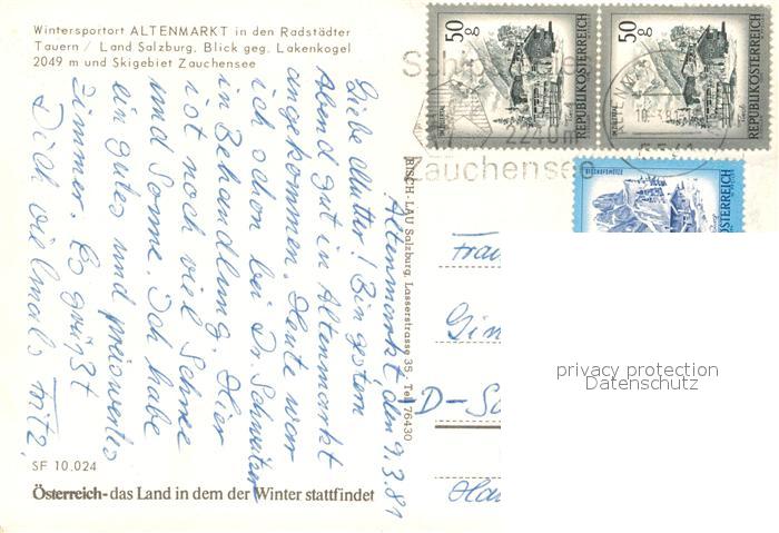 73152767 alte Postkarte Altenmarkt Pongau Winterlandschaft Skigebiet Zauchensee Lakenkogel postalisch gelaufen Erhaltung siehe scans [KathaD81] KatCode: 11390322050401