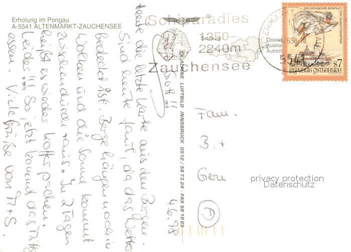 73522195 alte Postkarte Altenmarkt Zauchensee Fliegeraufnahme postalisch gelaufen Erhaltung siehe scans [WerneD78] KatCode: 11390